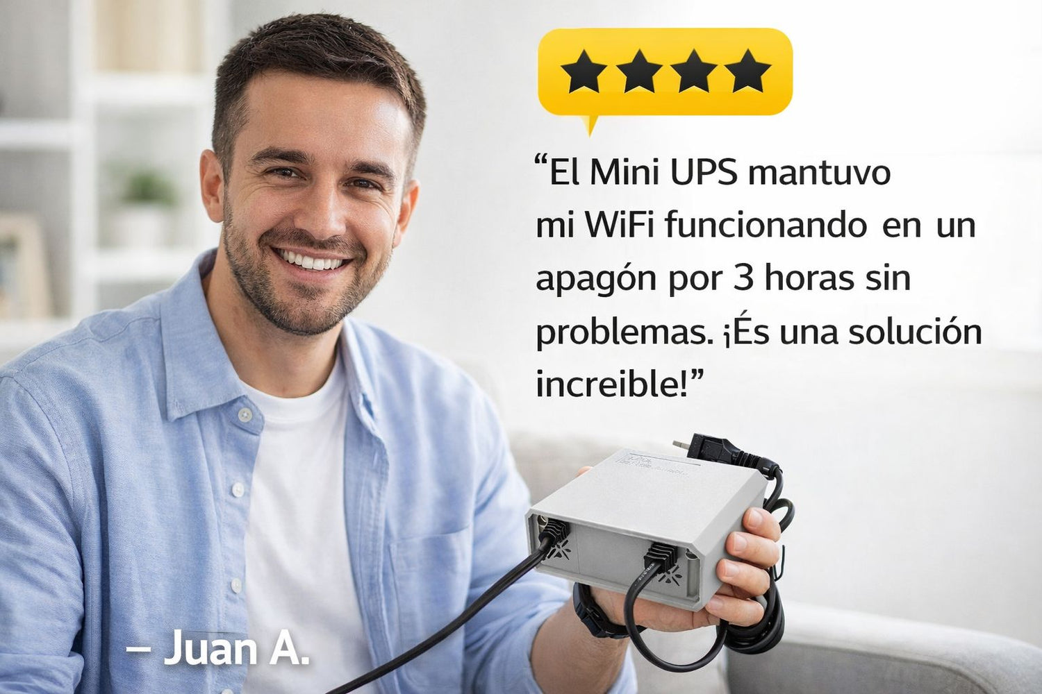1️⃣ Conecta el adaptador original de tu router al Mini UPS.2️⃣ Conecta el cable de salida del Mini UPS al router o módem.3️⃣ Enchufa el Mini UPS a la corriente eléctrica para que cargue su batería.4️⃣ Cuando se vaya la luz, el equipo activará automáticamente el respaldo sin que se apague tu WiFi ⚡